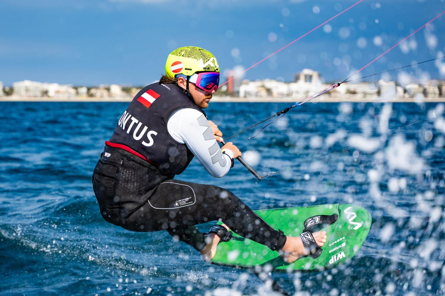 „Ich habe heute alles versucht und im ‚Grand Final‘ voll attackiert: ich bin rechts raus, habe dann die Layline zu eng genommen und beim Mark-Rounding verhing sich auch noch ein Plastiksack auf meinem Foil – das war insgesamt dann zu viel. Aber ich bin mit dem dritten Platz sehr zufrieden. Ich habe gezeigt, dass ich im ‚Game‘ bin und auf Top-Niveau performen kann. Die ganze Woche hindurch war ich in den Top-2, das gibt ordentlich Selbstvertrauen für den weiteren Saisonverlauf. Potenzial besteht sicher noch bei den Manövern und es geht um Details beim neuen Material: ich habe zwar schon ein solides Set-Up, aber da geht noch mehr – bis zur WM im September wird noch intensiv gefeilt“, berichtet Valentin Bontus.