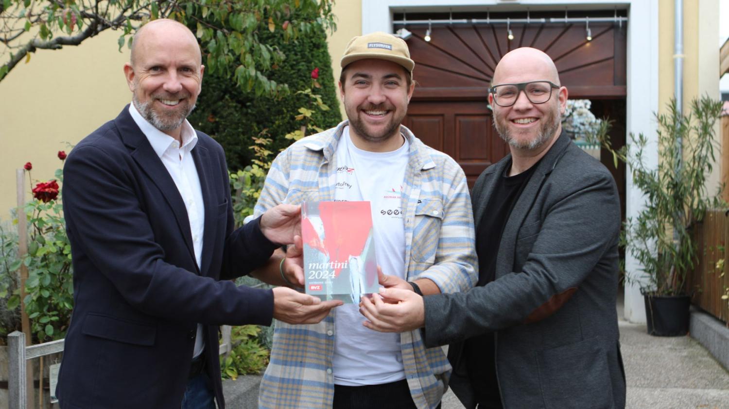 Bei Cornflakes-Schnitzel und Erdäpfelsalat wurde noch einmal auf das „verrückte Jahr“ mit dem goldenen Höhepunkt zurückgeblickt. „Preise zu erhalte, das ist nicht selbstverständlich und jedes Mal eine Ehre. Vor allem, wenn sie so cool aussehen wie der BVZ-Martini“, freute sich der Preisträger über die rot-goldene Auszeichnung und versprach: „Der BVZ-Martini bekommt bei mir daheim einen Ehrenplatz!“