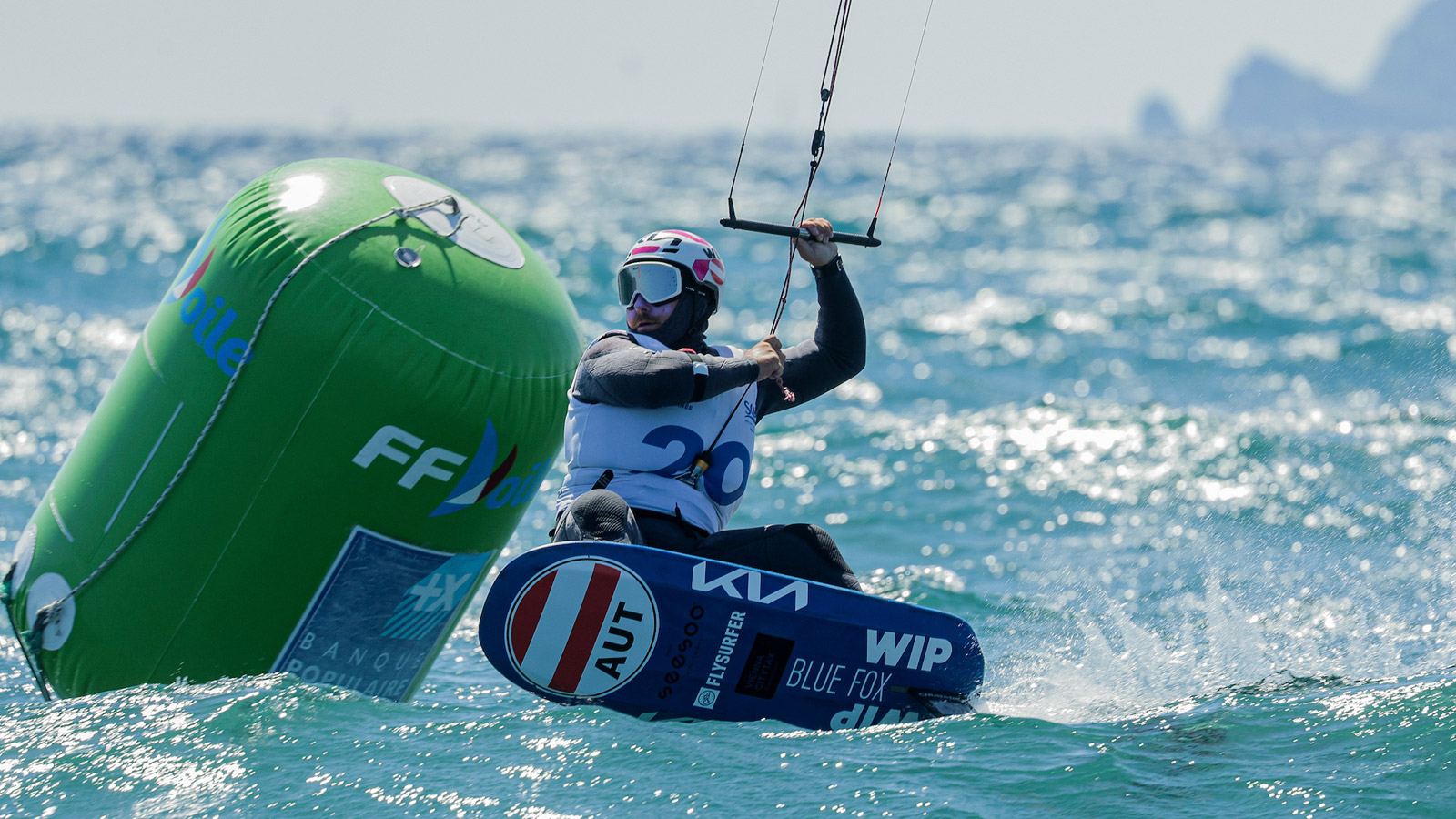 Valentin Bontus hat am Schlusstag der Formula Kite-Goldflotte bei der „Semaine Olympique Française“ vor Hyères, Frankreich, seine Ausgangsposition für die am Freitag angesetzte Medal-Series noch einmal deutlich verbessert.